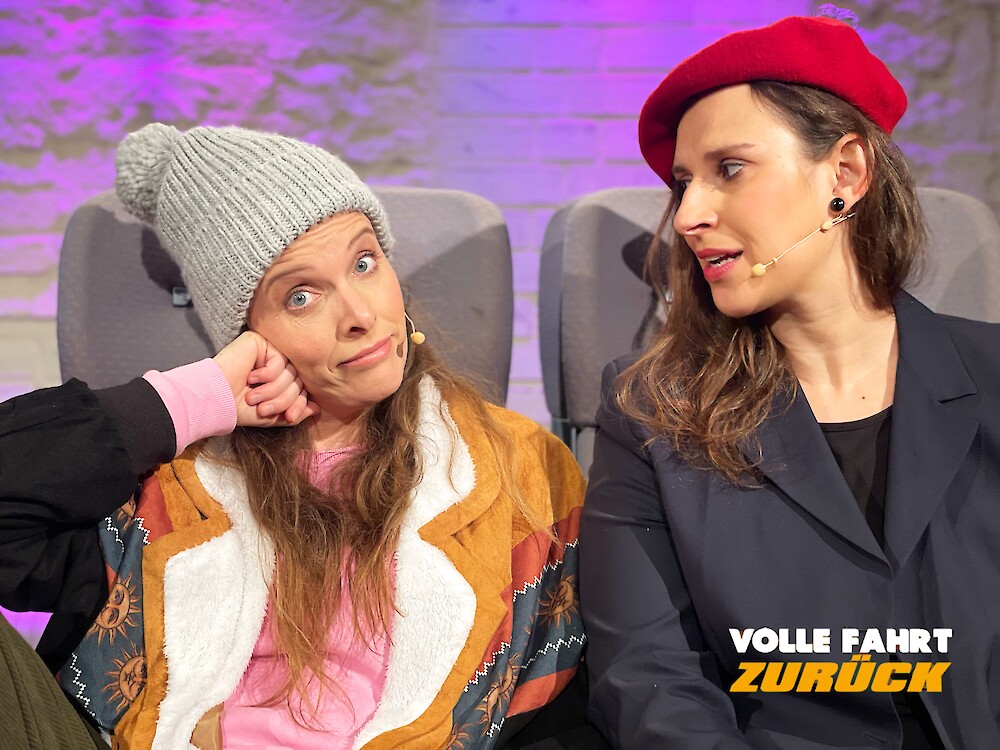 In „Volle Fahrt zurück“ treffen das selbsternannte Öko-Landei Jasmin und die ehrgeizige Berliner Großstadt-Schauspielerin Ann Katrin im ICE nach München aufeinander. Zufall? Fast – denn beide fahren zum selben Casting. Für dieselbe Rolle. In derselben Serie. Was folgt, ist eine temporeiche, musikalisch gespickte Reise durch den Wahnsinn des Medienbetriebs, klischeebeladene Frauenbilder, absurde Schönheitsideale, Gender-Gap, Karriere-Überlebenskämpfe und den alltäglichen Wahnsinn zwischen Toastbrot und Tiktok.